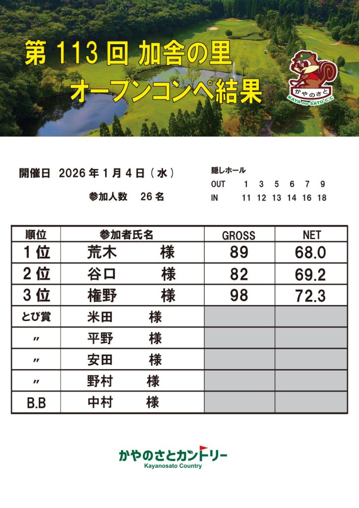 triangle 第113回加舎の里オープンコンペ結果